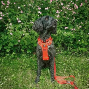 The striking orange hue adds a touch of flair to your walks, with reflective webbing to enhance visibility on darker days/nights, while the padded traffic handle ensures safety in any situation. With its durable and weatherproof construction, this harness is ready for whatever the day brings.